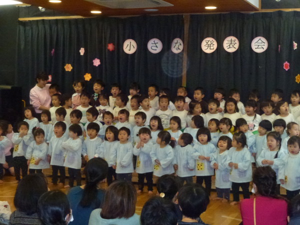 たくさんのお父さん、お母さんの前で緊張して泣いてしまう子どももいましたが