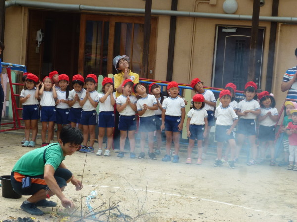 火や水の大切さを教えてもらったり一緒にゲームをして楽しみました。